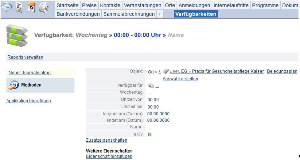 Sollte ein Veranstaltungsort nur an bestimmten Tag bzw. nur zu bestimmten Zeiten verfügbar sein, können entsprechende Verfügbarkeiten hinterlegt werden.