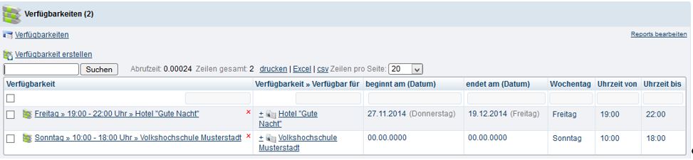 Verfügbarkeiten (Orte)
