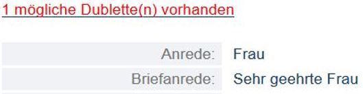 Auf mögliche Dubletten wird in den Kontaktdetails der betroffenen Kontakte hingewiesen, sobald Vor- und Nachname bearbeitet werden.