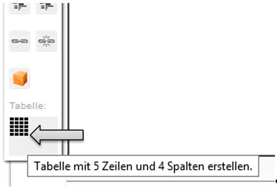 Zum Erstellen von Tabellen stellt cmxOrganize Ihnen ein Werkzeug zur Verfügung, durch das Sie mit einem Klick eine Tabelle mit gewünschter Spalten- und Zeilenzahl erstellen können.