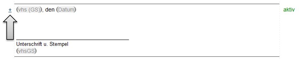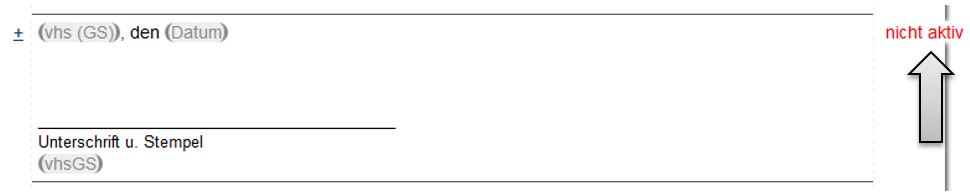 Um einen Textblock zeitweise auszublenden/nicht zu drucken, muss das grüne „aktiv“ angeklickt werden, sodass es zu einem roten „nicht aktiv“ wird.