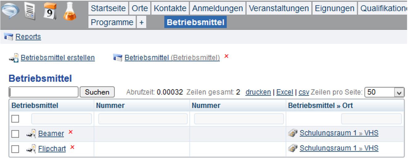 Ein neues Betriebsmittel wird über den Link „Betriebsmittel erstellen“ erfasst (s. obige Abb.).