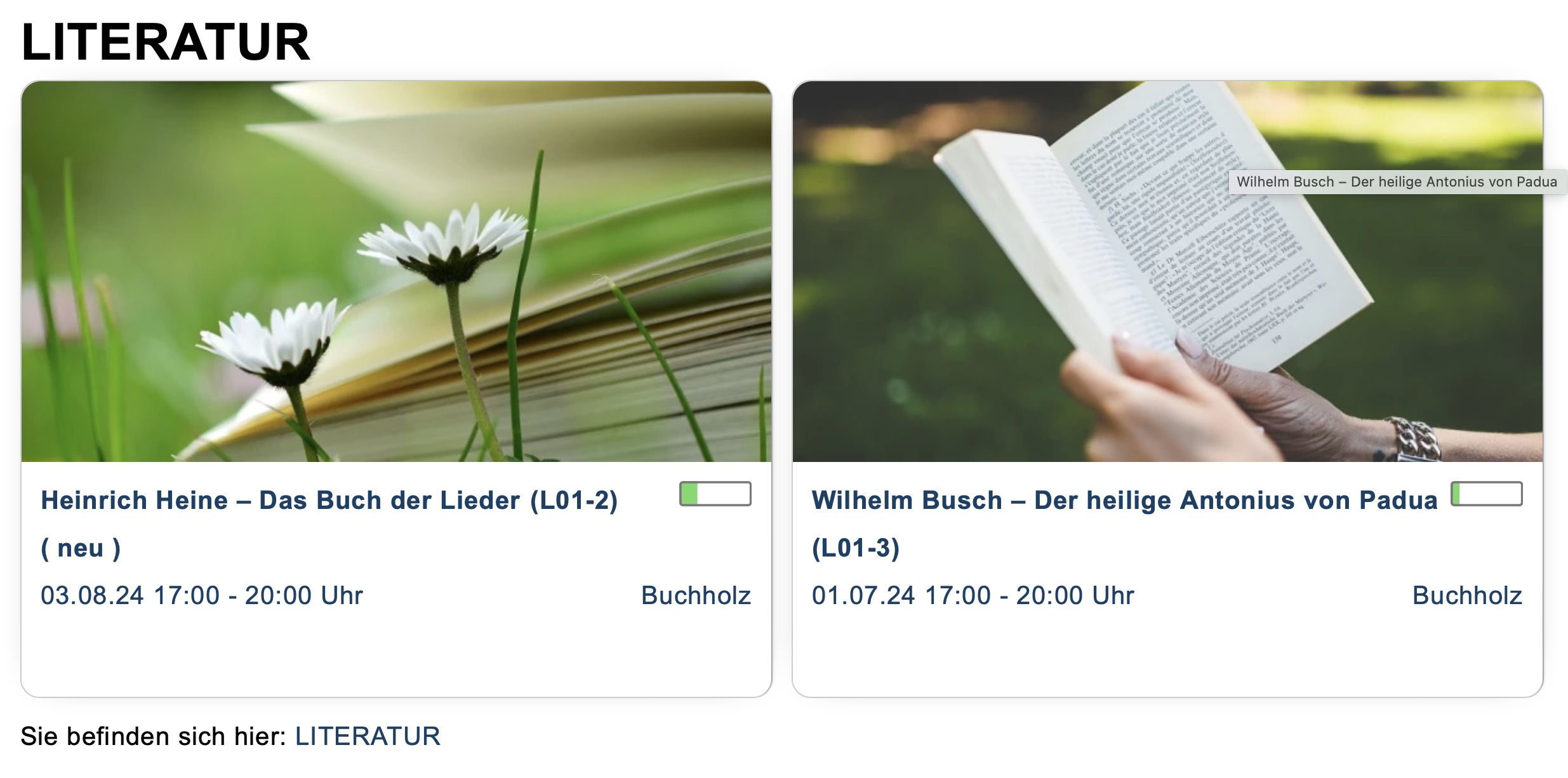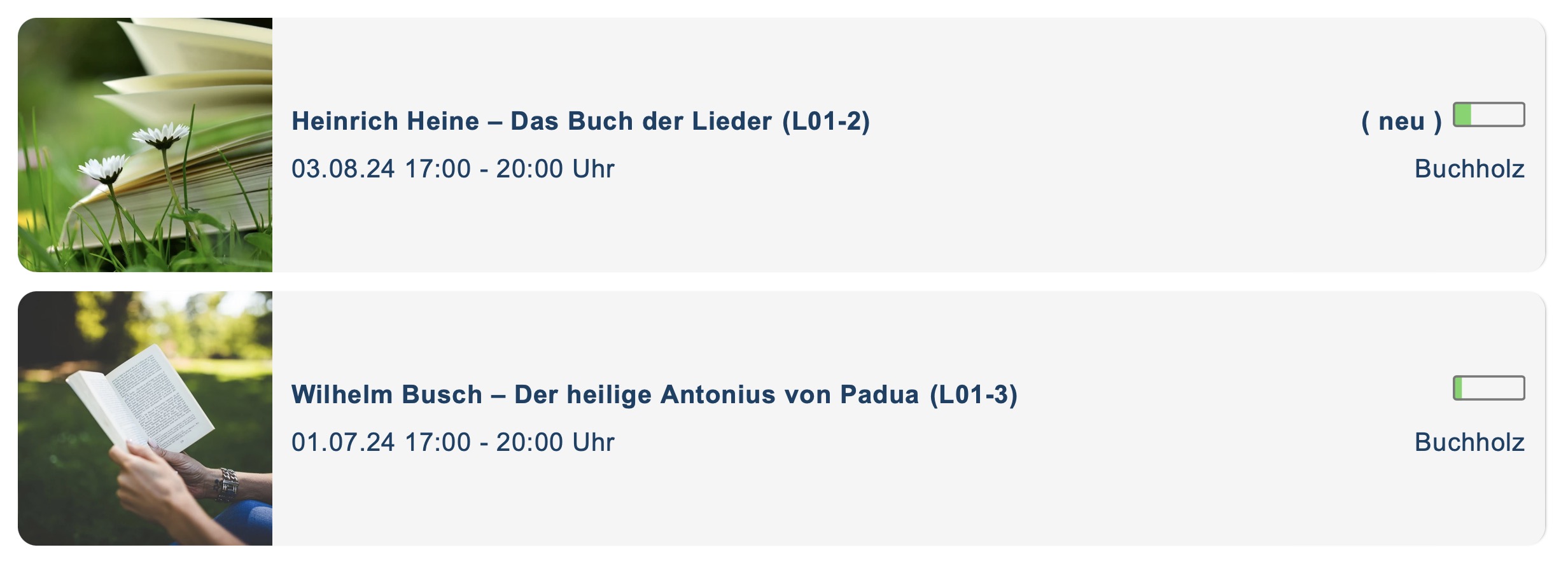 Kacheldarstellung von Veranstaltungen (Digitales Programmheft)